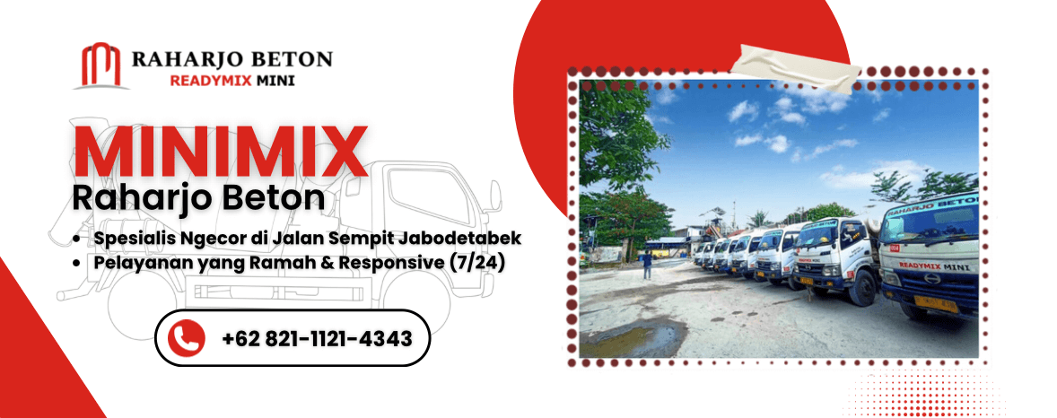 Raharjo Beton MiniReadymix Specialist adalah perusahaan penyedia beton siap cor dengan spesialisasi MiniReadymix. Menggunakan armada truk mixer kecil yang dapat menjangkau jalanan kecil, kompleks perumahan, areal perkotaan yang lebar jalannya terbatas, area basement gedung dengan keterbatasan tinggi kendaraan, dan keterbatasan area lainnya yang tidak dapat dijangkau menggunakan truk mixer biasa yang tinggi dan besar yang dirancang hanya untuk proyek pembangunan gedung dan jalan besar.
