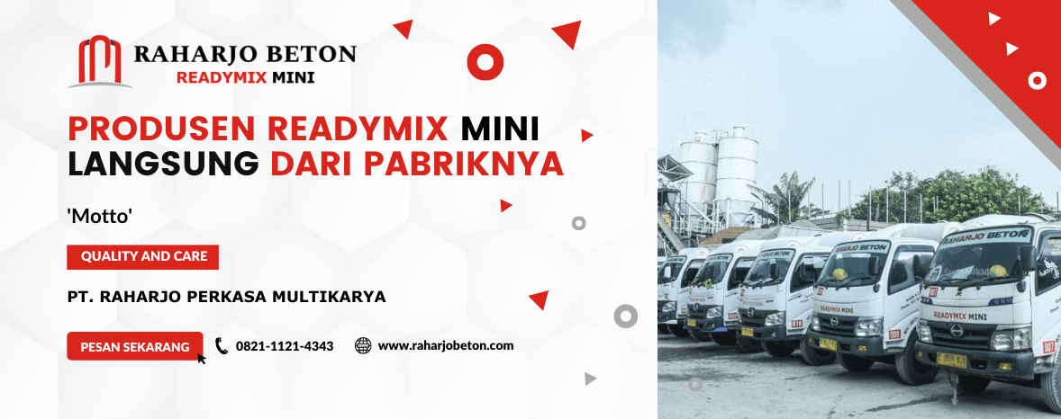 Raharjo Beton MiniReadyMix Specialist memudahkan konsumen retail maupun Perusahaan yang berlokasi dengan akses yang tidak dapat di jangkau truk mixer beton besar. Karena itu memudah kan pengecoran lebih cepat, praktis dan efisien dengan tetap menjaga kualitas beton.